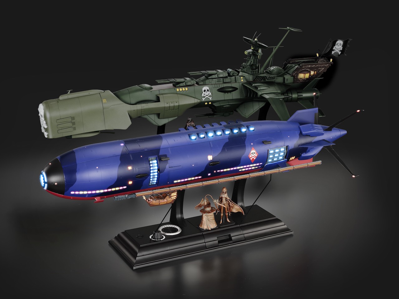 このモデルは、劇場版『銀河鉄道999』(1979年8月公開)に登場した船で、どくろのレリーフを持つ艦首と華美な船尾楼が特徴です。企画総合プロデューサーの野中剛氏がデザインと開発に取り組み、最高グレードの巨大モデルが完成しました。